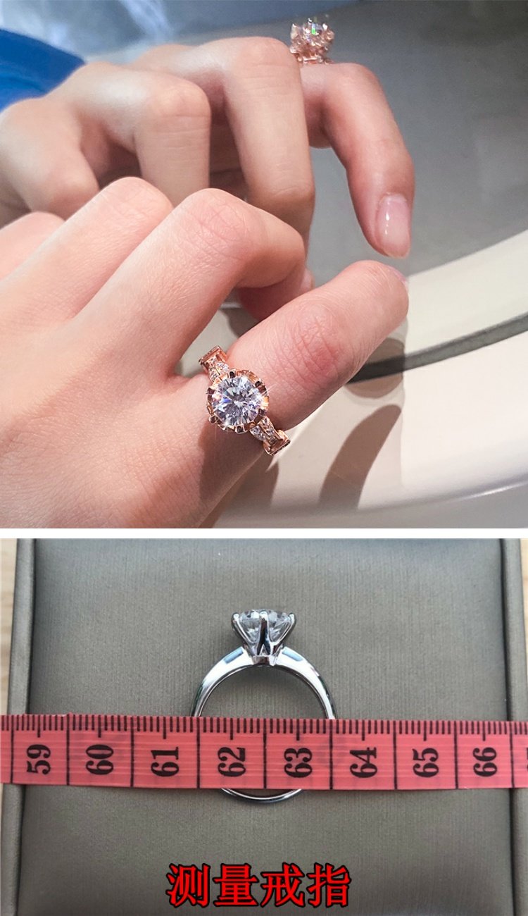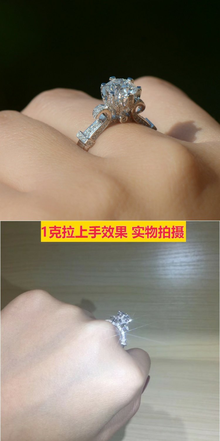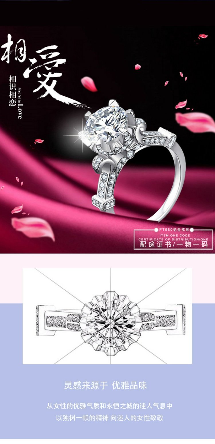 小眾純銀鍍鉑金pt950花瓣仿真鉆戒