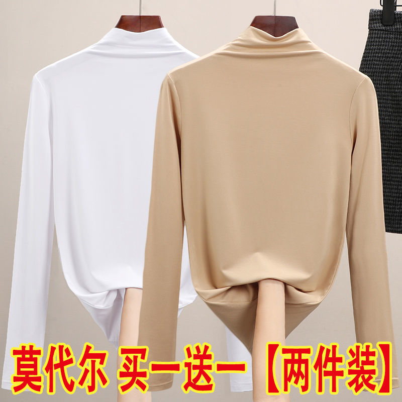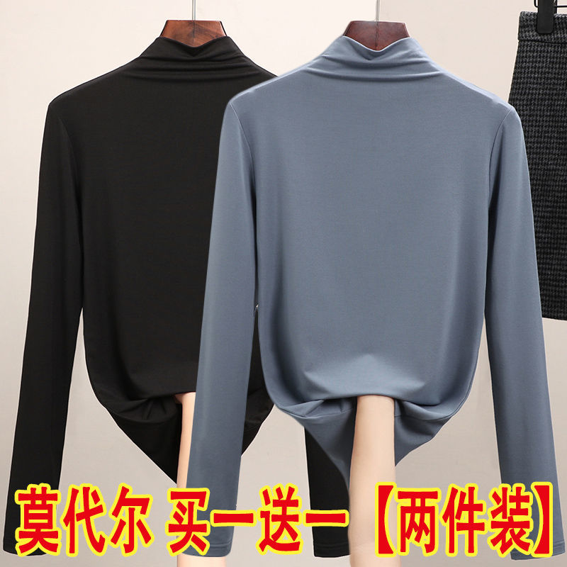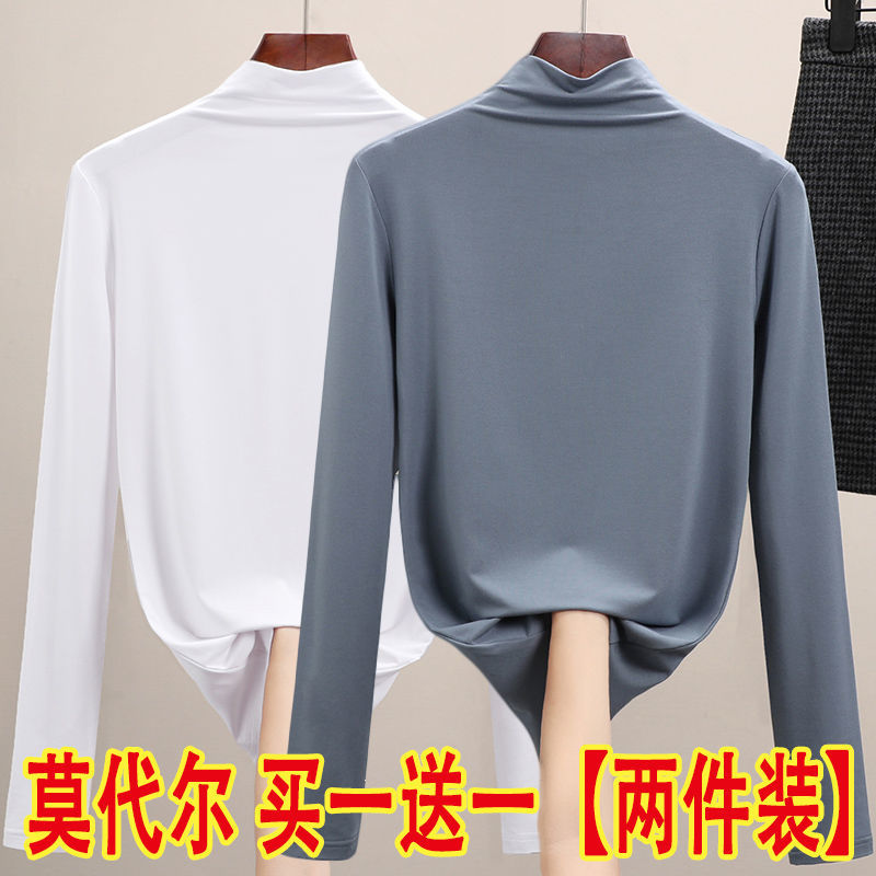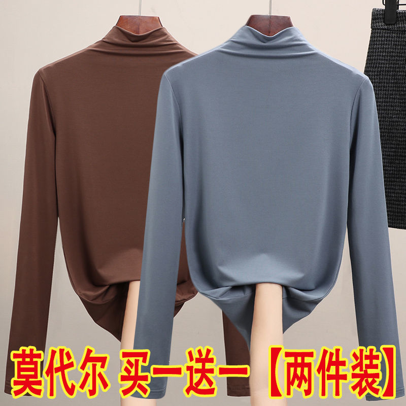 單/兩件裝 莫代爾半高領長袖打底衫女秋季修身內搭t恤女上衣