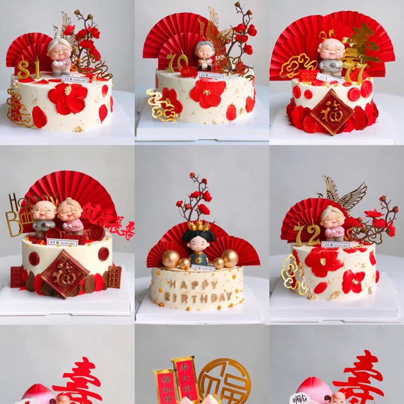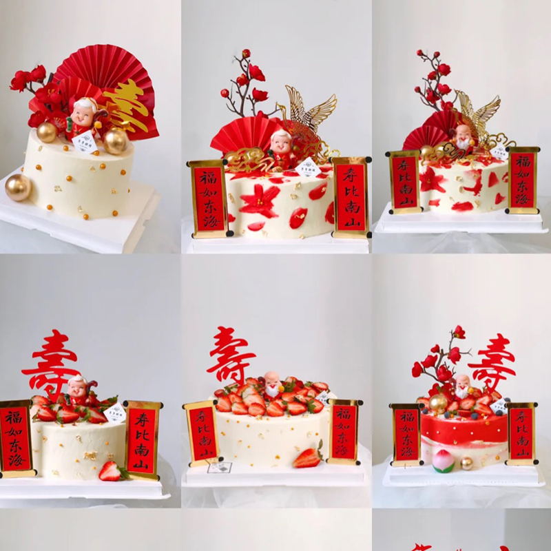 祝壽蛋糕主題裝飾壽星公壽星婆壽桃梅花插件爺爺奶奶生日壽宴合集