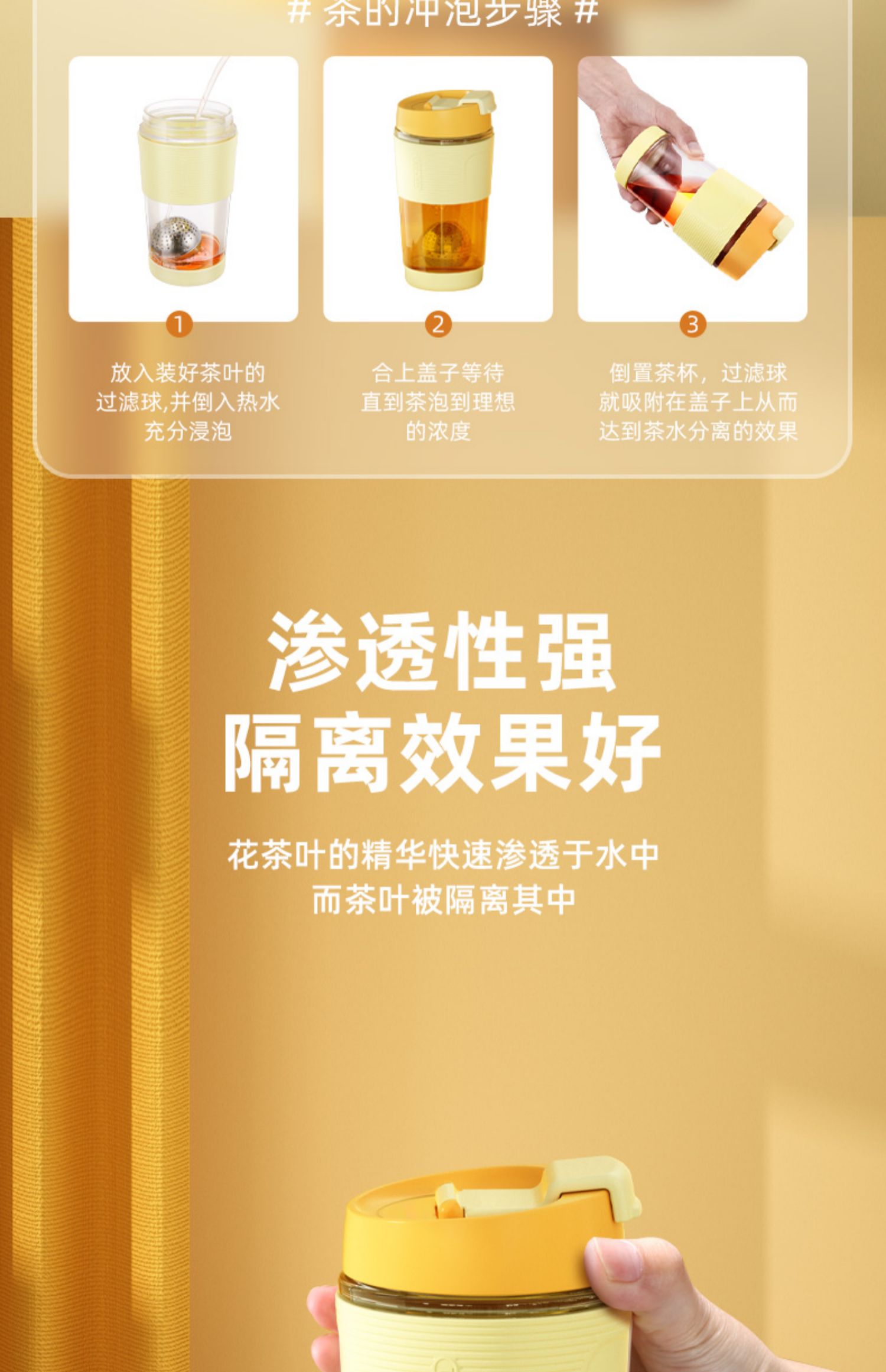 磁吸茶水分離泡茶杯女士玻璃水杯子