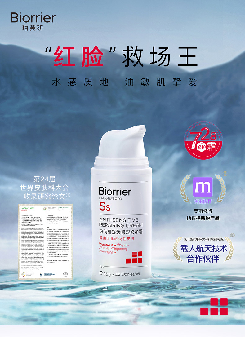 珀芙研舒緩保濕修護728霜 敏感肌溫泉水補水紅臉特護肌膚屏障乳