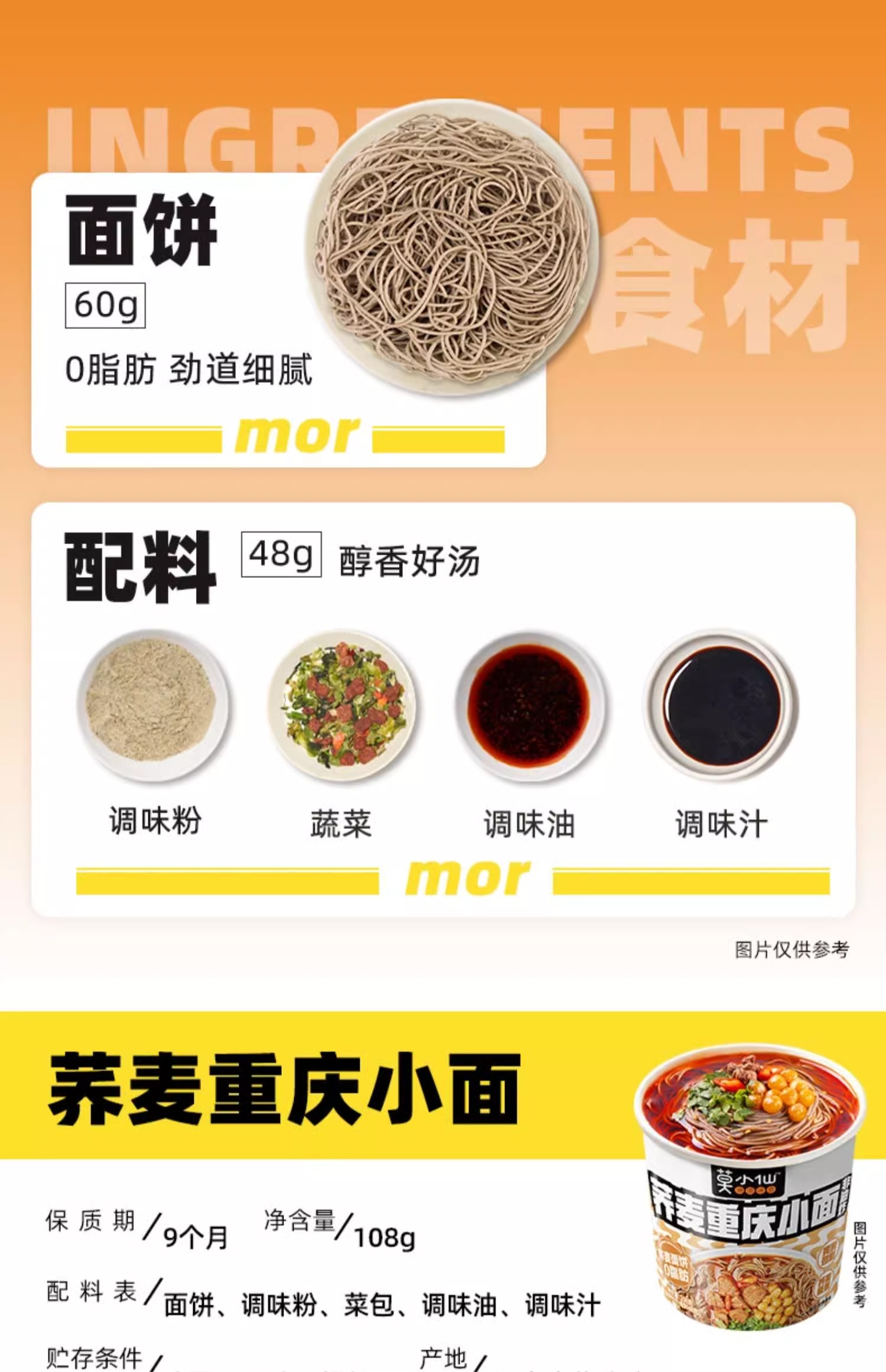 莫小仙非油炸蕎麥重慶小面方便面泡面拉面整箱懶人速食即食品批發