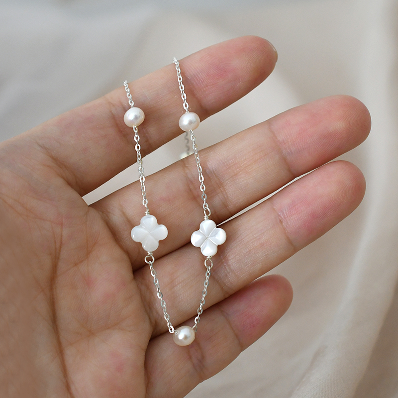 --- 天然淡水珍珠/天然母貝打磨的四葉草