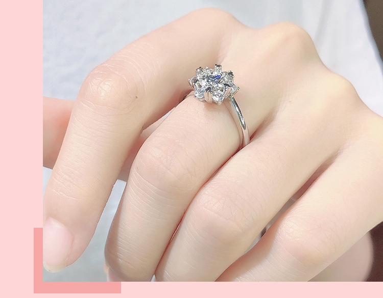 歐美女雪花錯臂微鑲1克拉六爪鉆戒