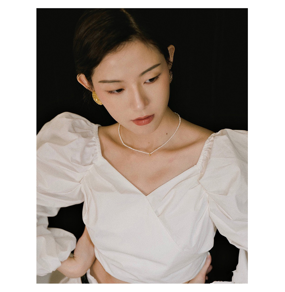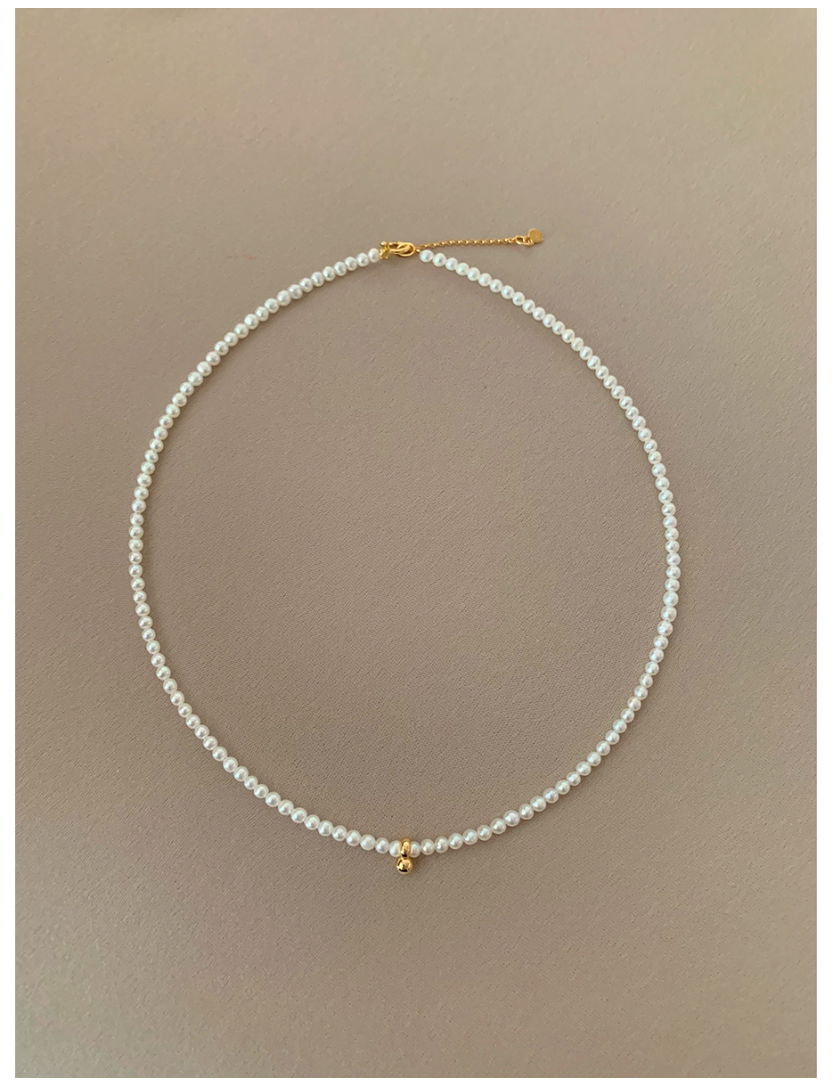 CHICWANG春款明星楊采鈺同款高端精致925純銀鍍18K金白色圓珠項鏈