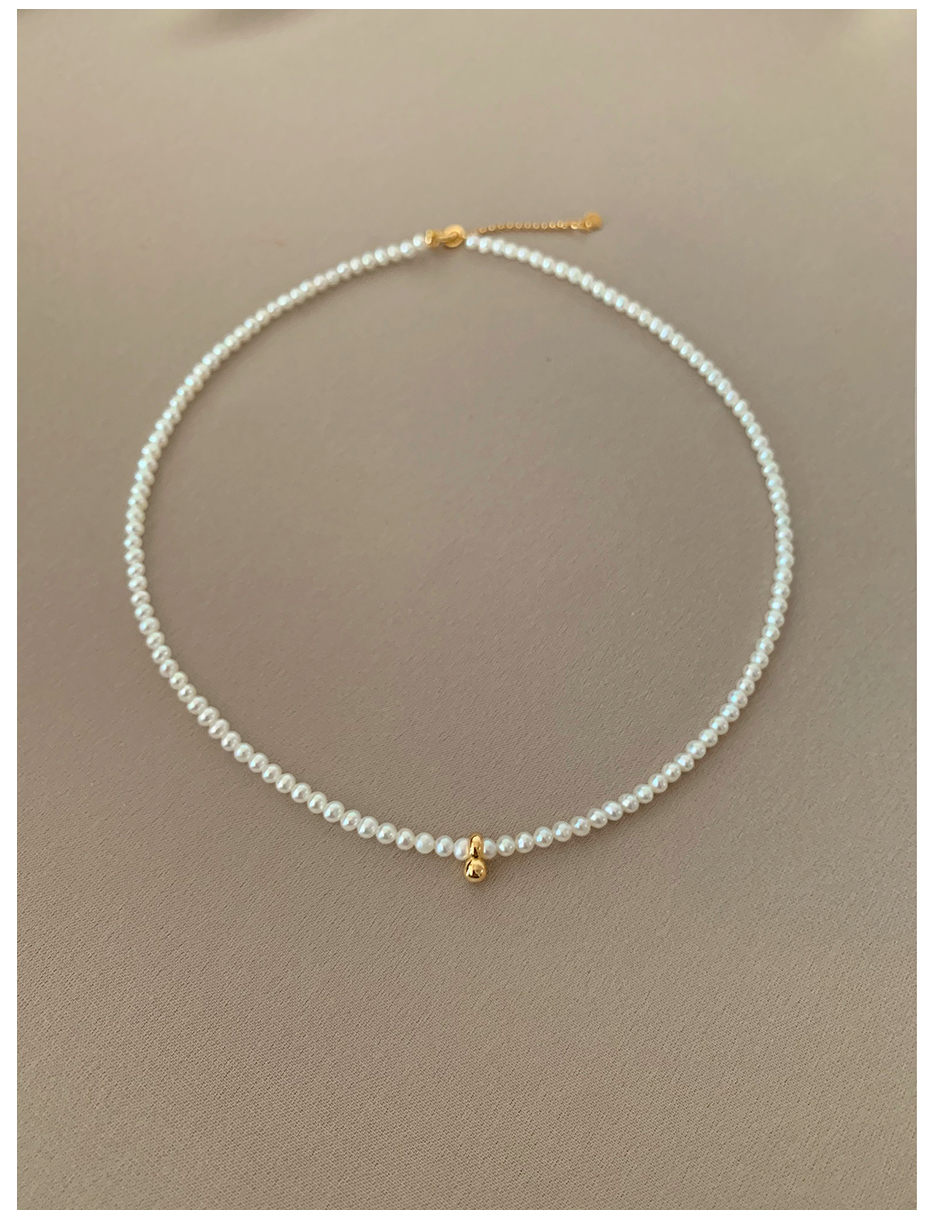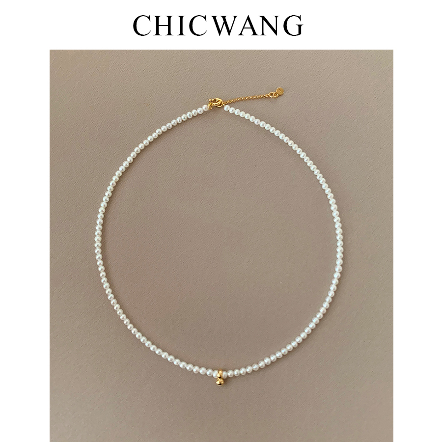 CHICWANG時尚精致百搭純銀鍍金色天然巴洛克小珍珠白色鎖骨項鏈女