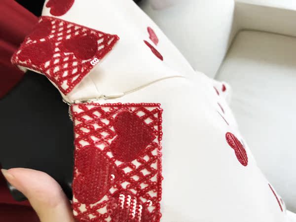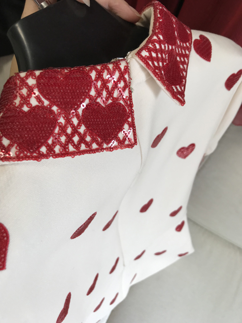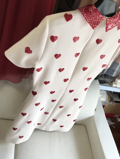 然后還有一個就是這種款式,這種低調壓得住場子是沒有的重磅連衣裙,全手工的領子千顆珠片+整身的愛心釘珠,10年,20年后依然不會淘汰的,