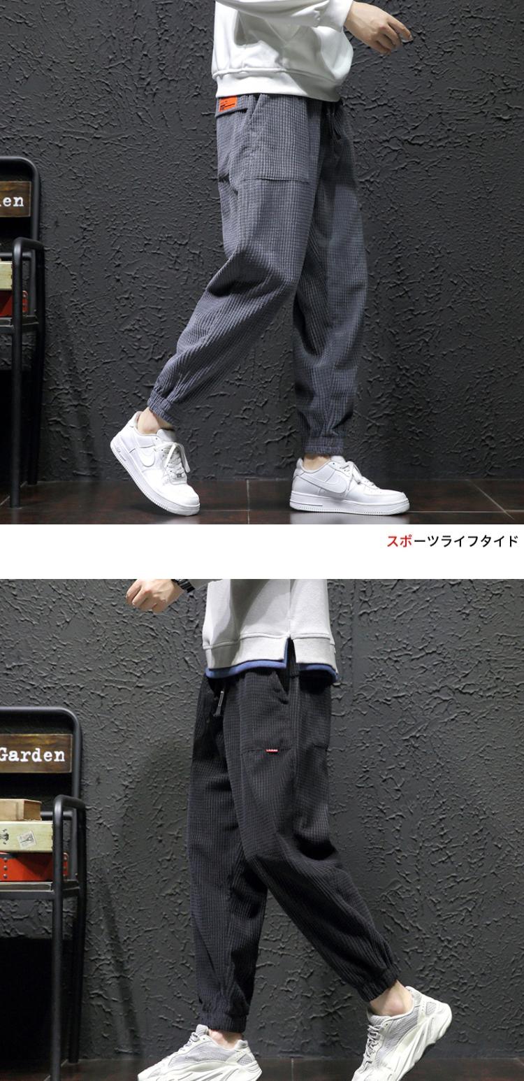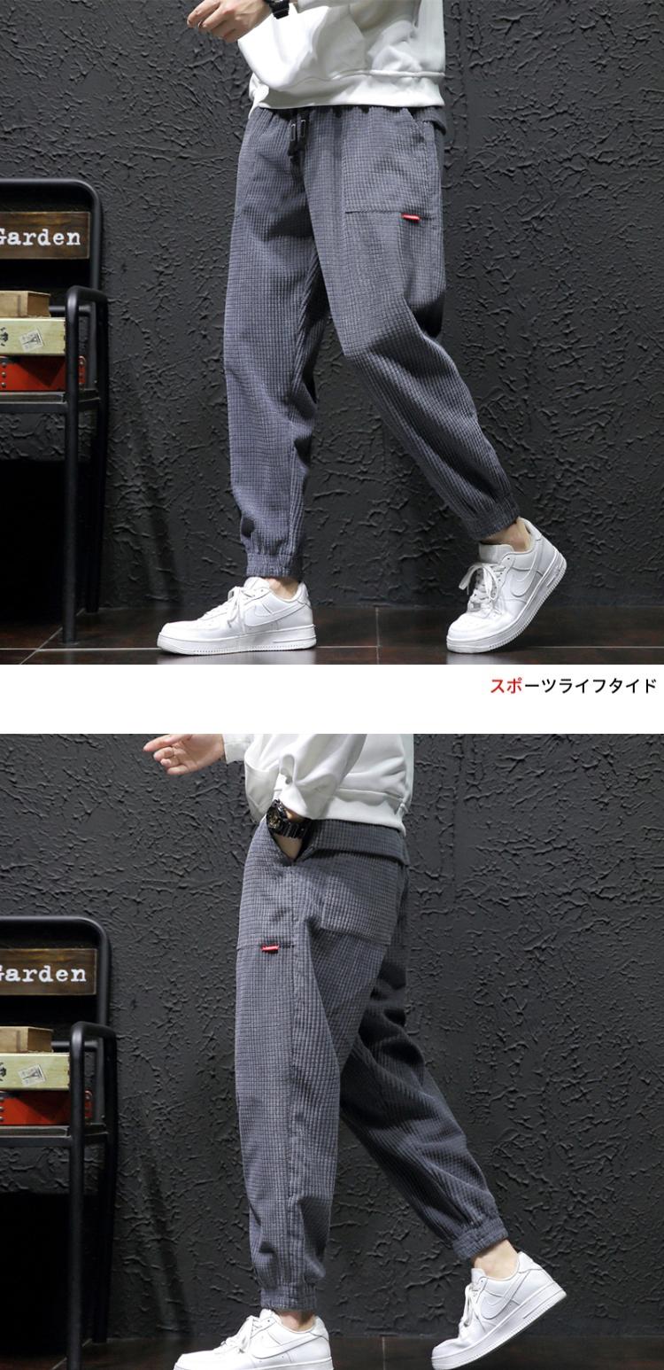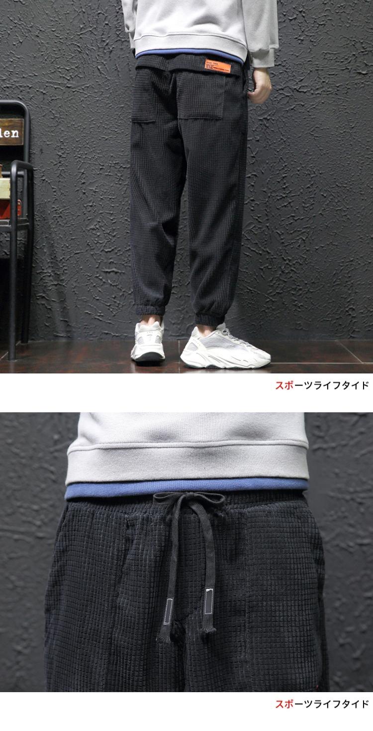 華夫格燈芯絨休閑男寬松束腳長褲子