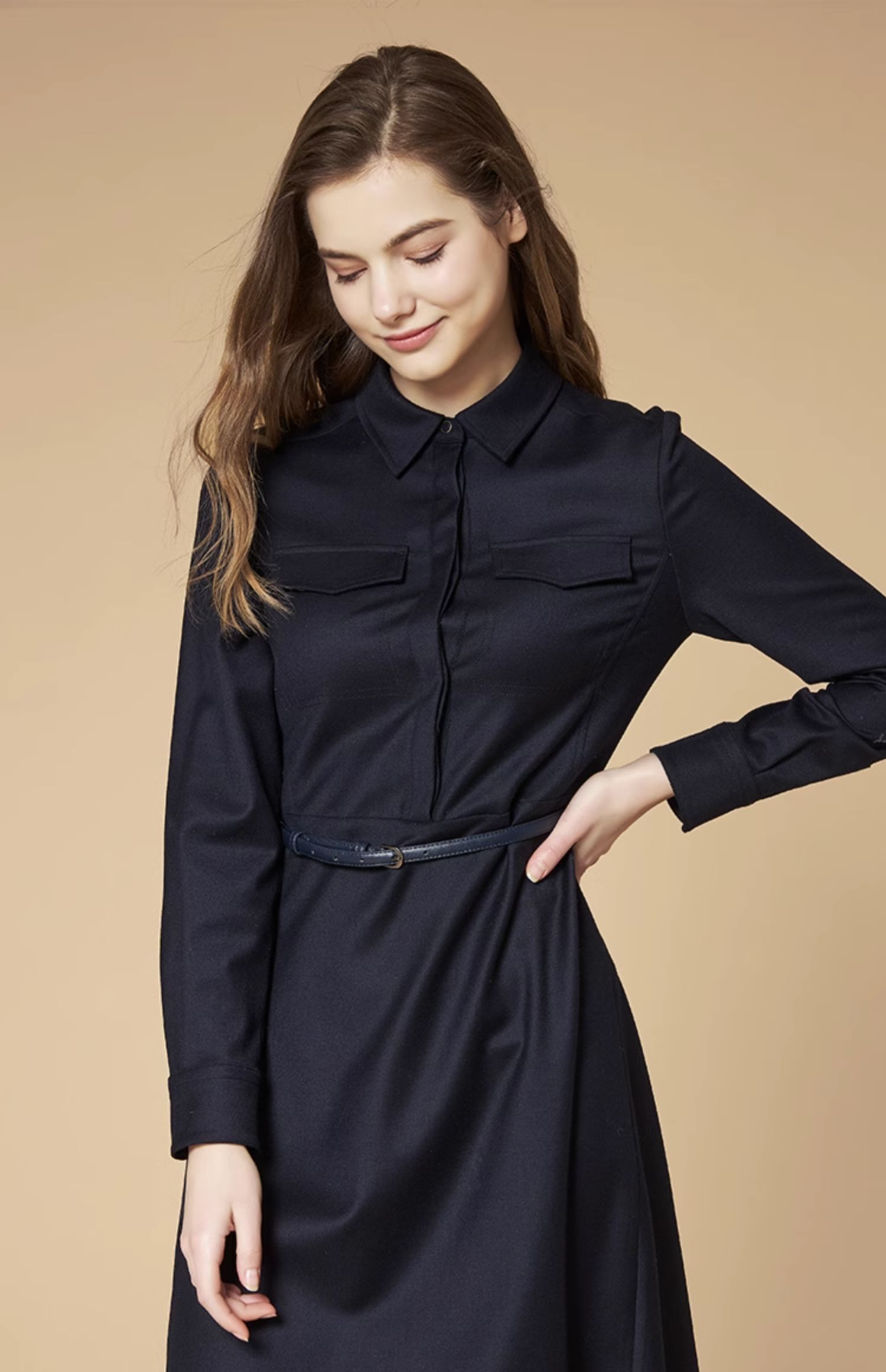hazzys哈吉斯官方羊毛長袖連衣裙