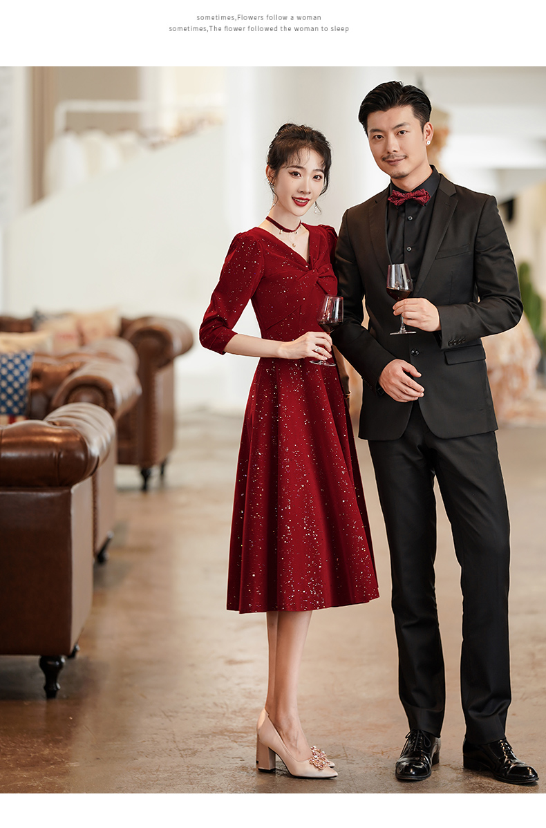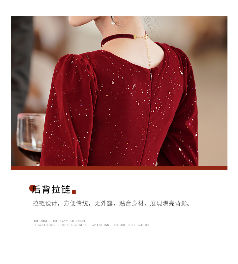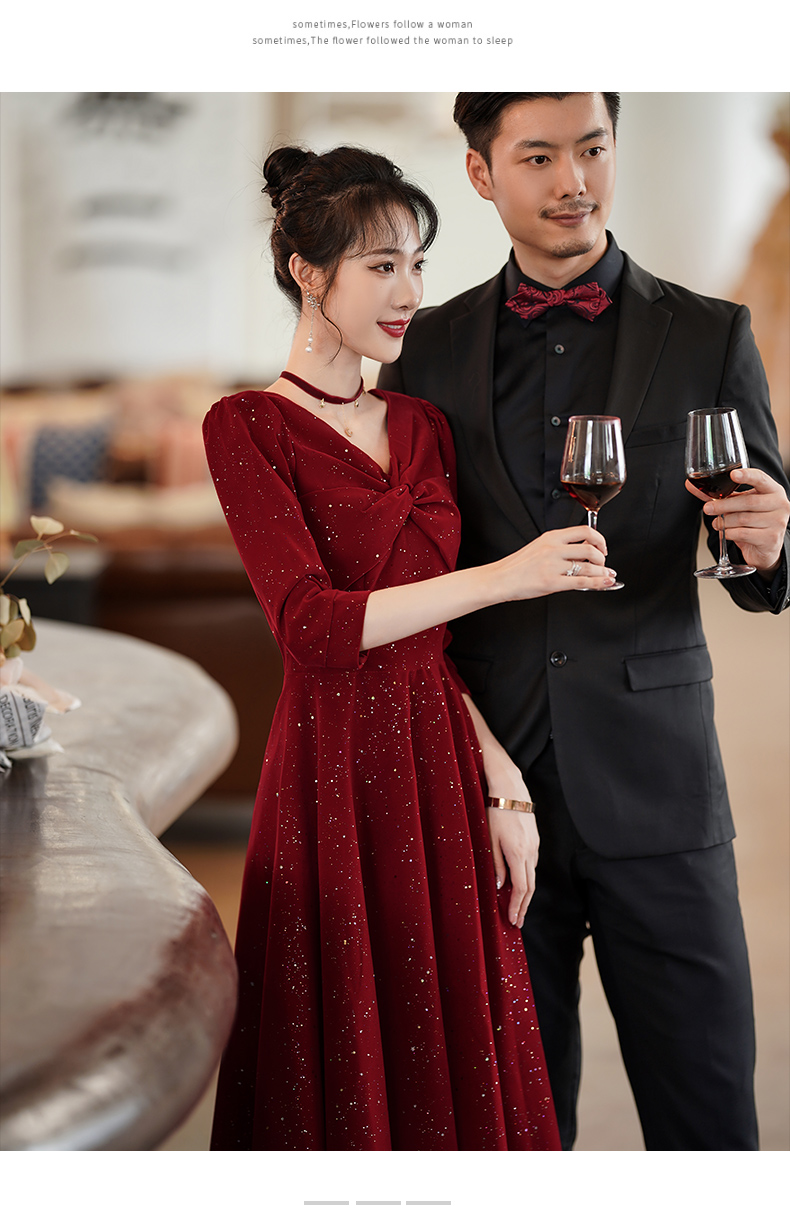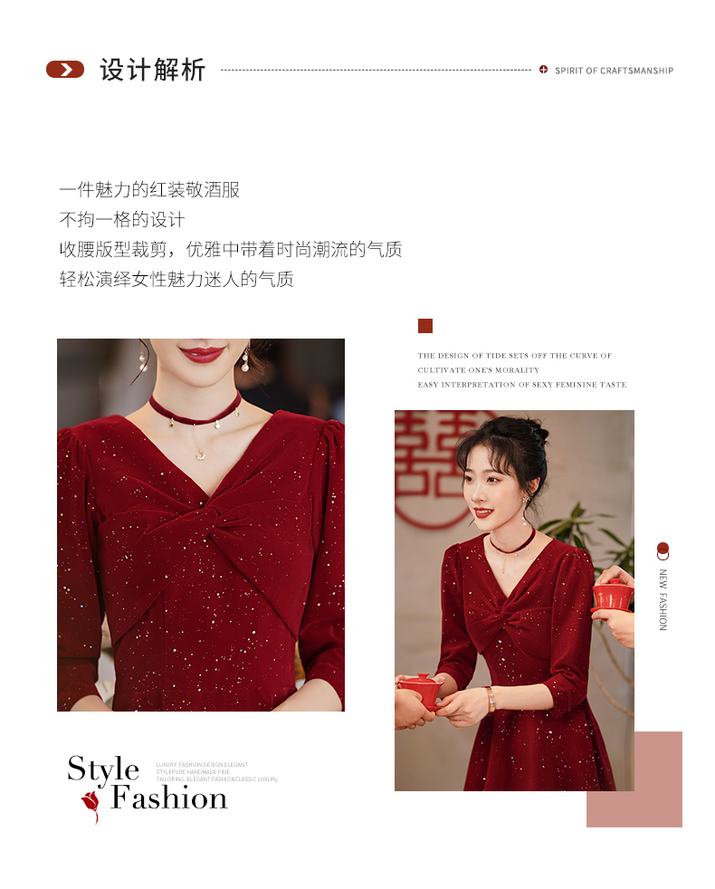 新娘酒紅色平時可穿長袖絲絨敬酒服