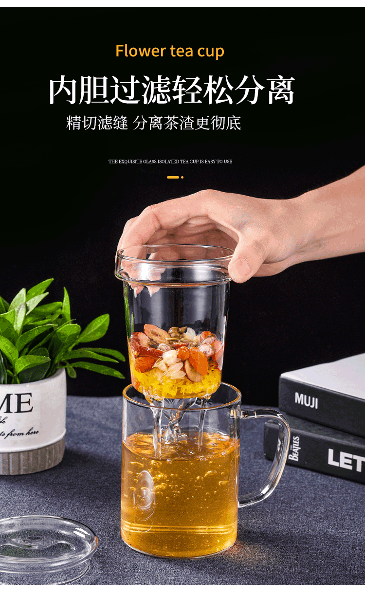 耐高溫防爆茶水分離高檔家用玻璃杯