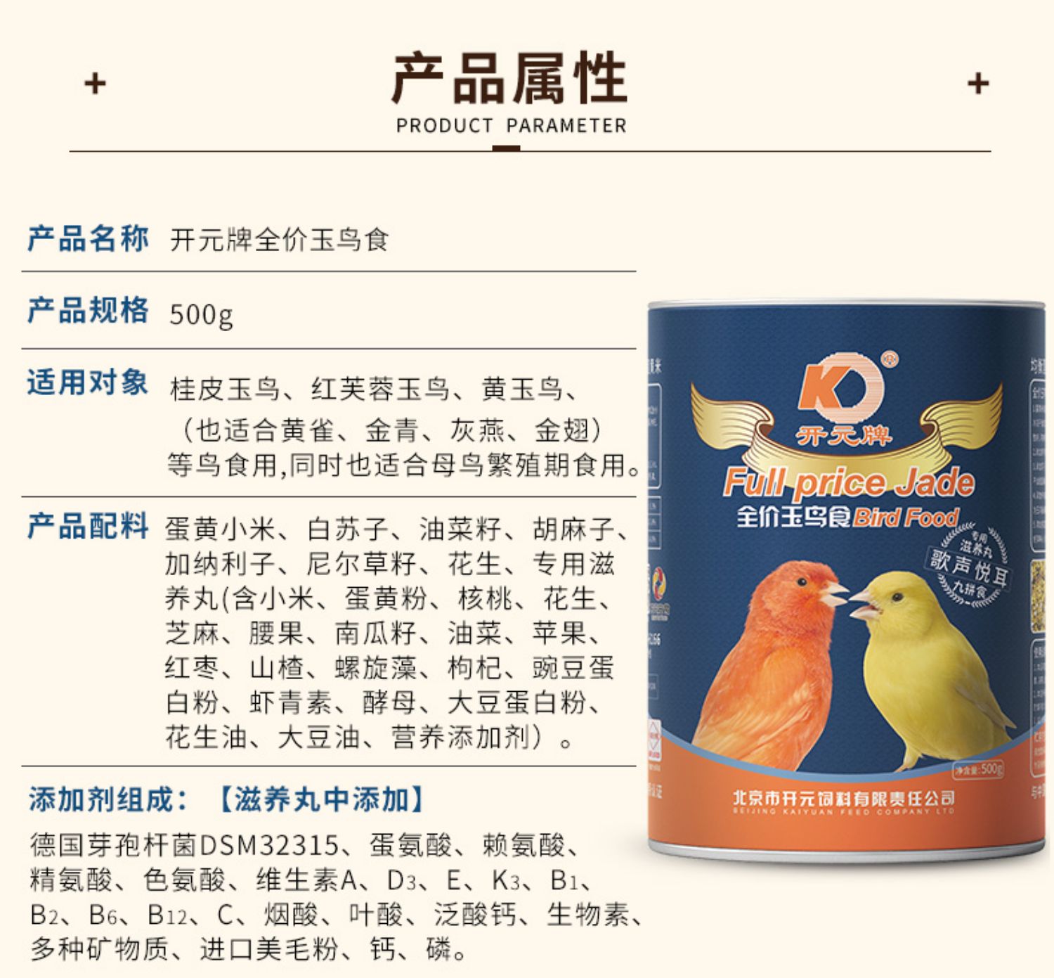 開元無殼玉鳥食全價玉鳥專用飼料金絲雀文鳥黃雀鳥糧營養蛋小米