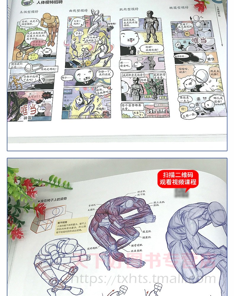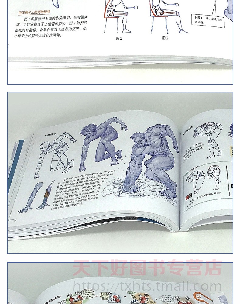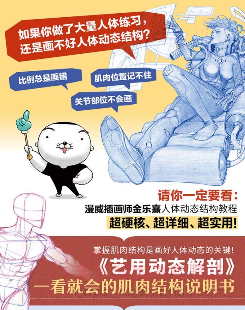 藝用動態解剖 內文附贈46集視頻課程 素描繪畫教材 漫威插畫師金樂熹人體動態結構教程肌肉結構 2000多幅配圖釋義100多種姿勢精