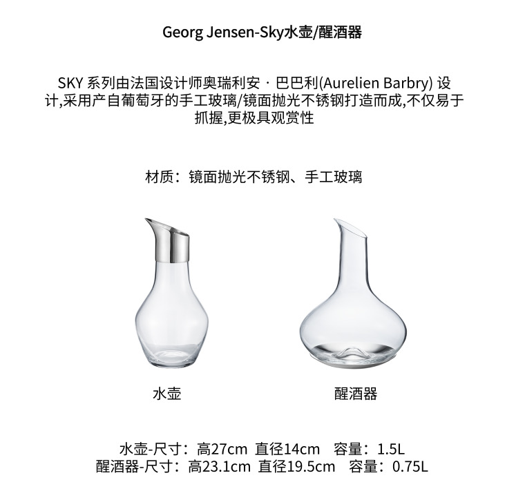 現貨 丹麥georg jensen喬治杰生紅酒醒酒器 玻璃不銹鋼輕奢樣板房