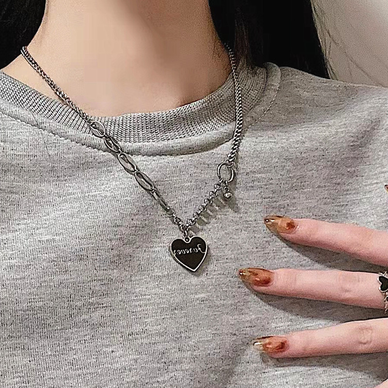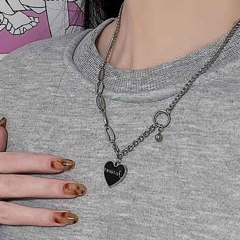925純銀黑色愛心項鏈鎖骨鏈女ins嘻哈小眾設計感毛衣鏈衛衣配飾潮
