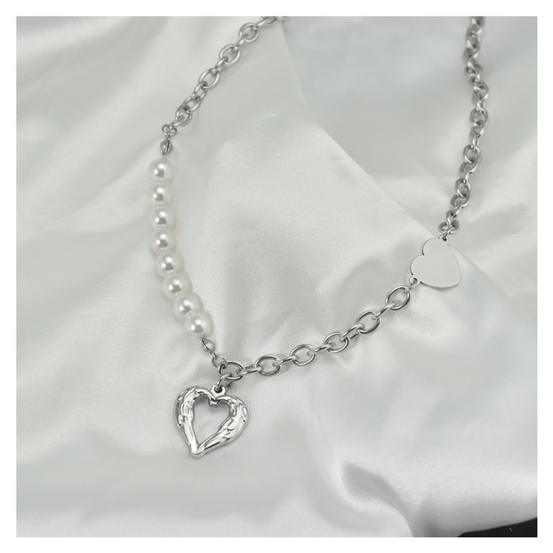 仿珍珠愛心項鏈女ins冷淡風嘻哈個性百搭鎖骨鏈新款配飾毛衣鏈潮