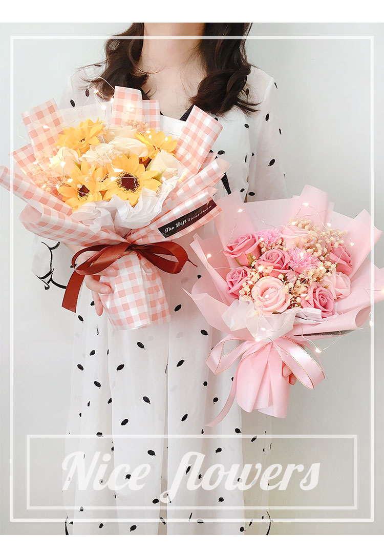 教師節玫瑰向日葵花束仿真香皂花混搭送女生閨蜜女友生日老師禮物