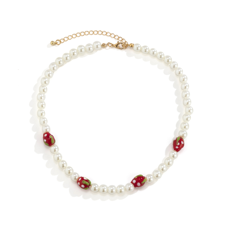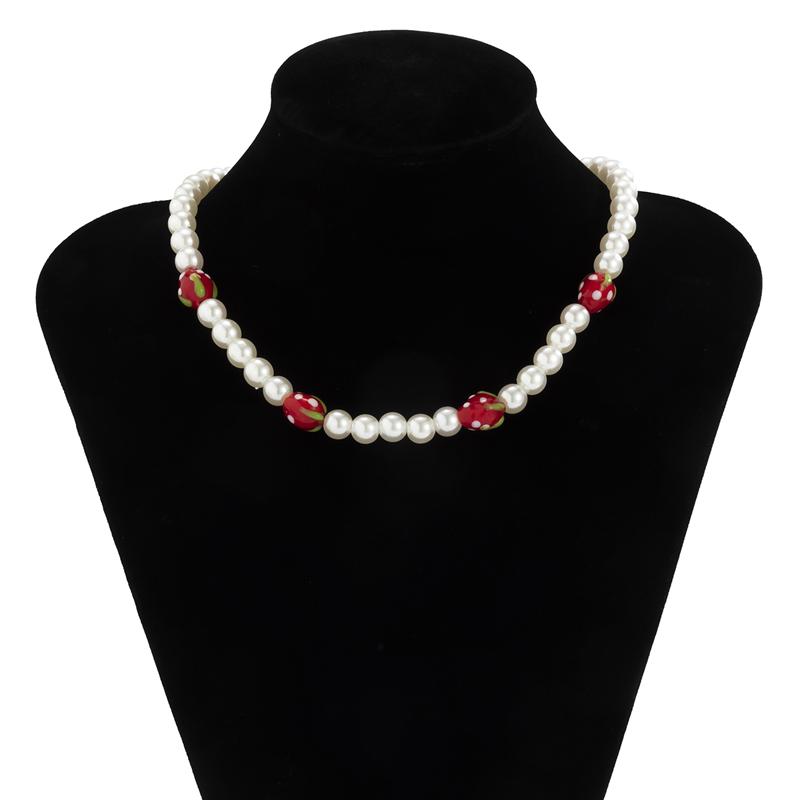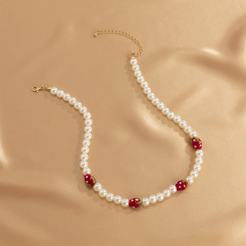 紅色草莓人造珍珠項鏈女夏秋新款歐美個性女生可愛趣味ins風頸鏈