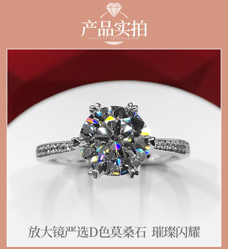 18K金六爪皇冠莫桑石戒指女50分1二3克拉鉆戒結婚禮飾品訂婚情侶