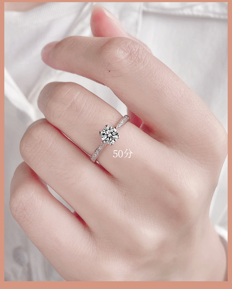 雪花鉆戒女六爪純銀飾鑲嵌白金戒指