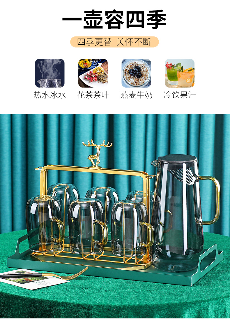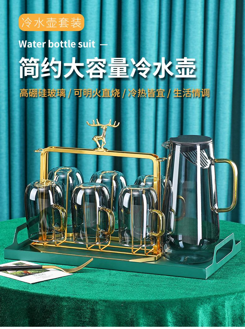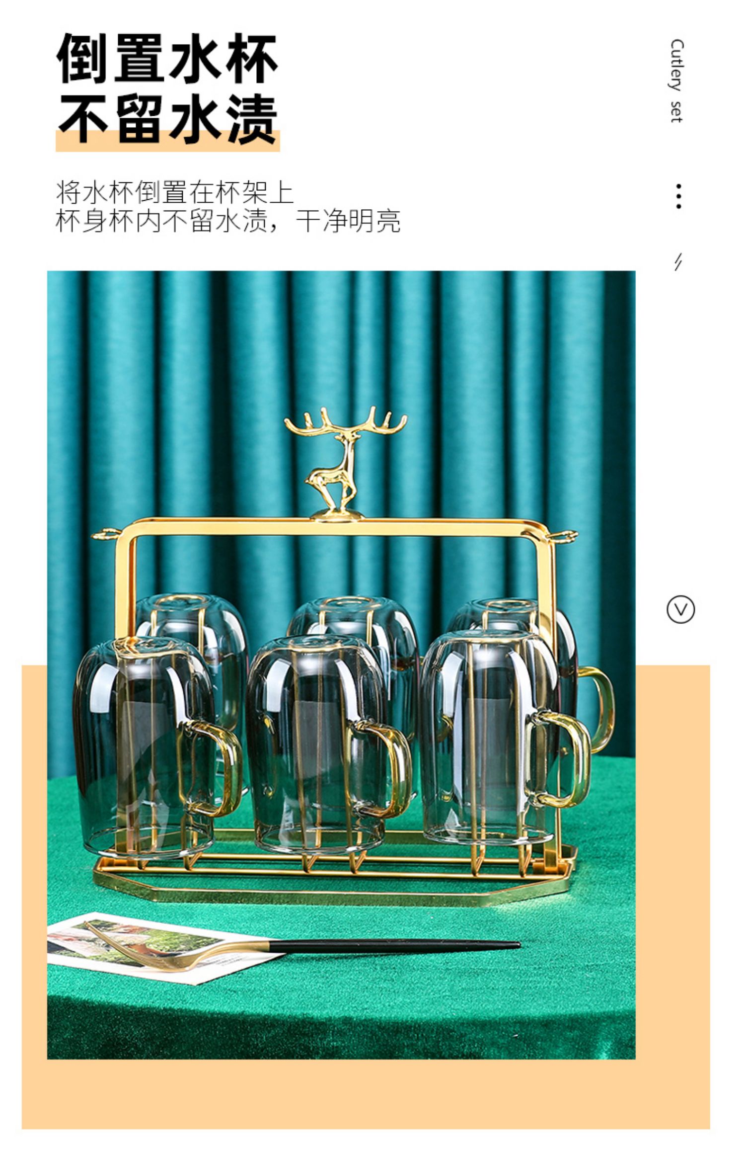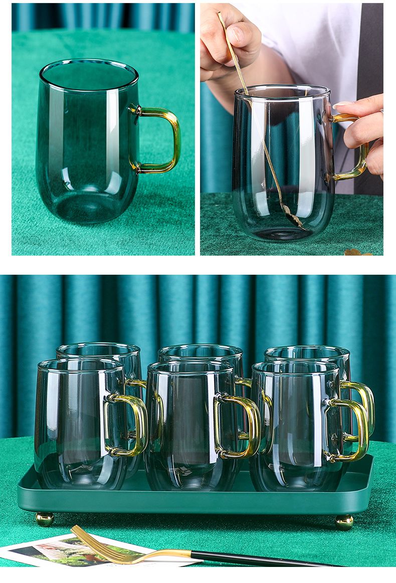 玻璃杯家用帶手柄喝水杯茶杯冷水壺北歐客廳水具家庭輕奢杯子套裝