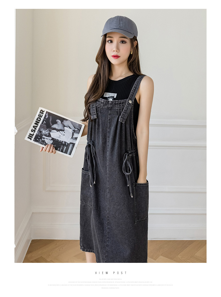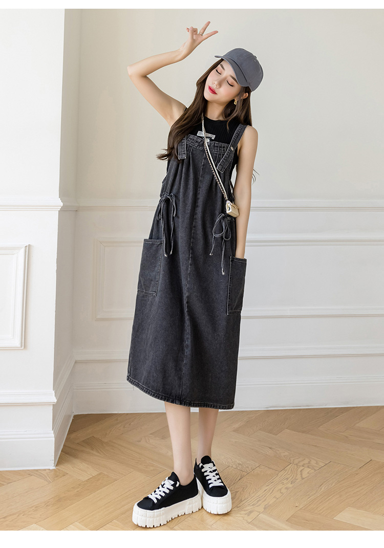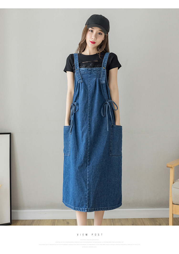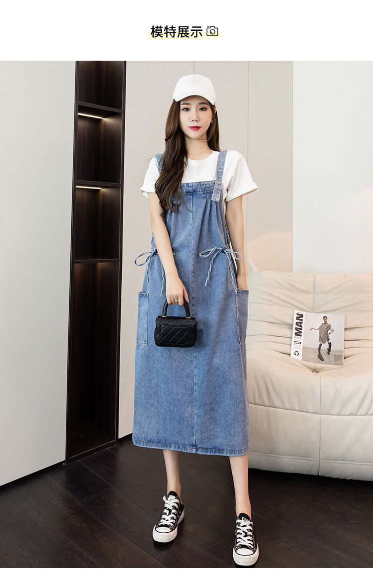 2023減齡背帶牛仔長裙新款加大碼韓版收腰a字寬松吊帶連衣裙潮裙