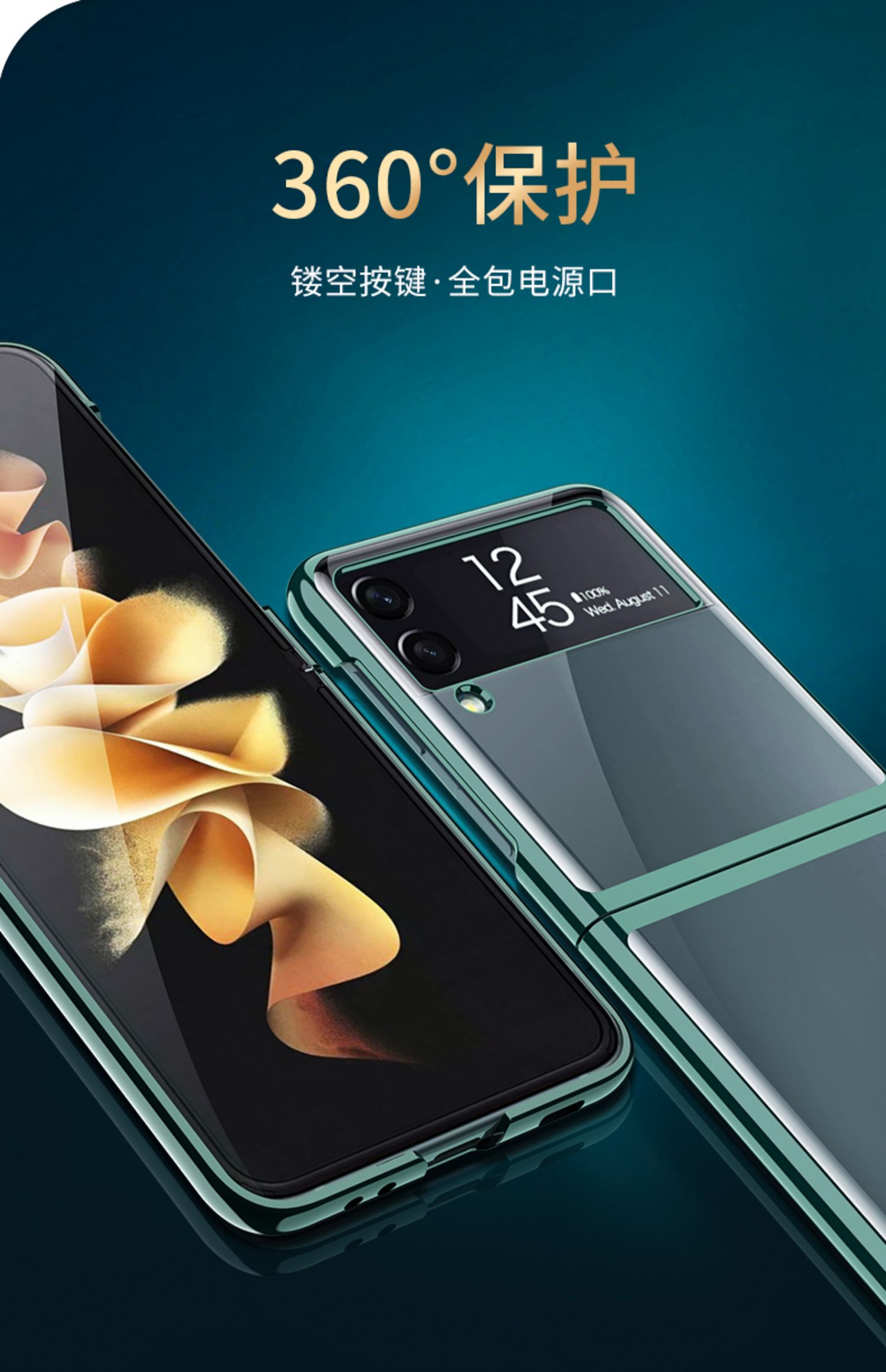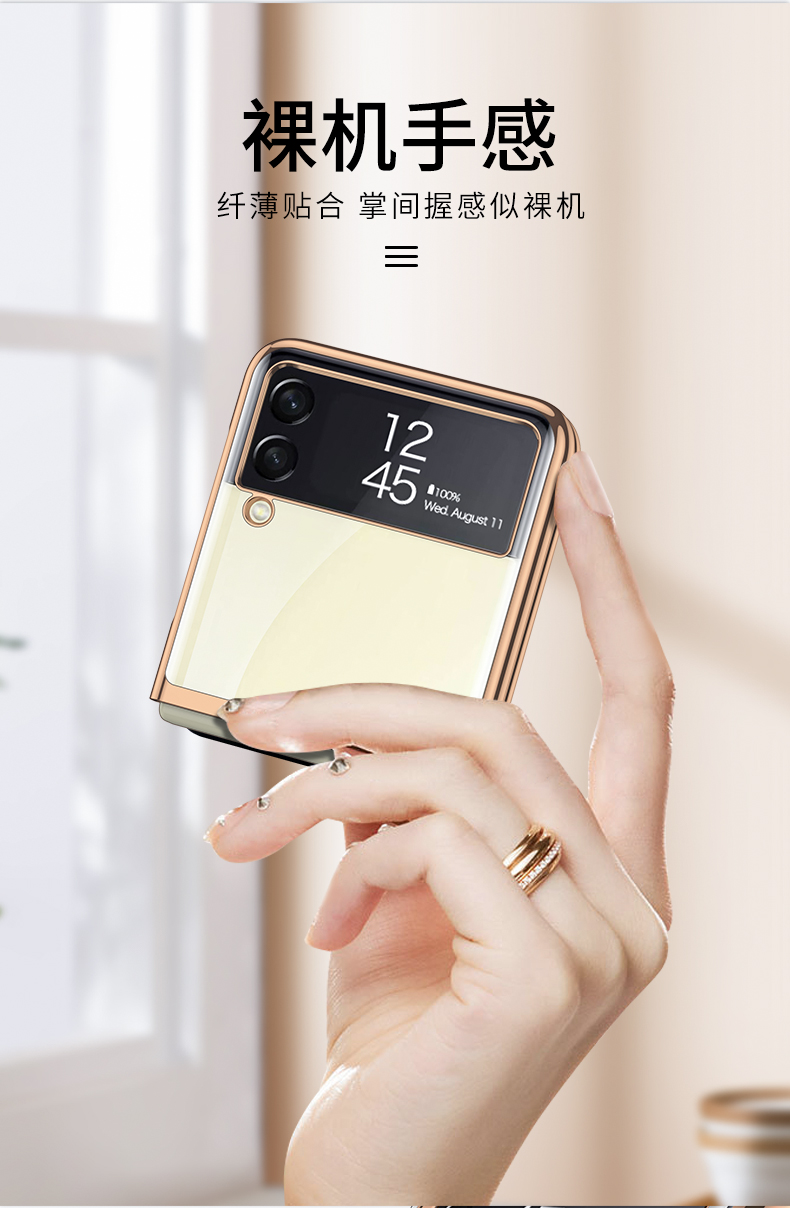 適用于三星Galaxy zflip3手機殼折疊屏全包透明保護殼f7100超薄電鍍5G限量版保護殼三星f720簡約男女款保護膜