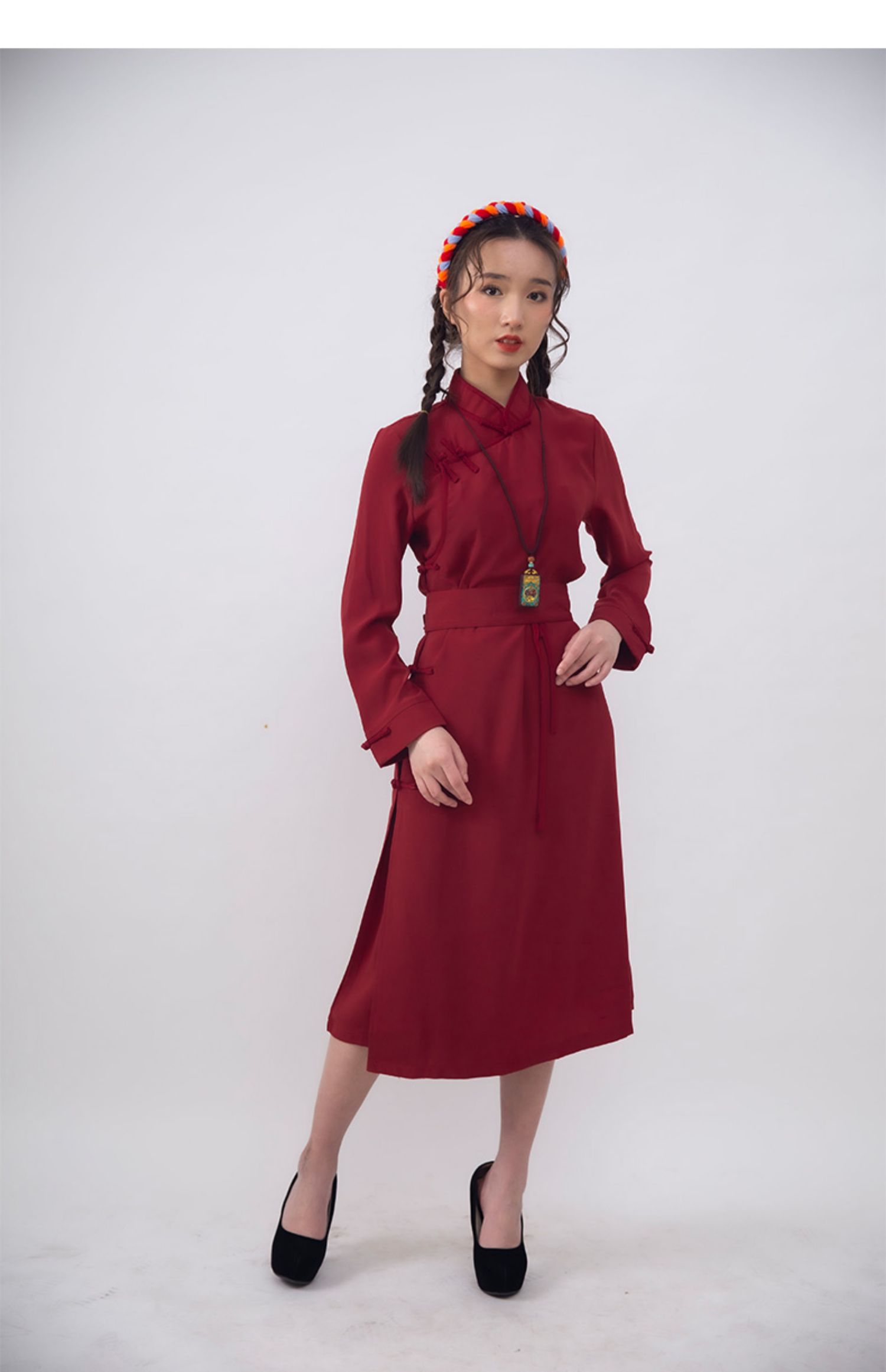 密西可可 藏族服裝女民族風中長款藏式長裙改良版袍子外穿連衣裙