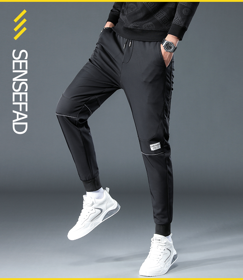 光面滑料冰絲褲子男夏季休閑褲韓版潮流哈倫褲潮牌秋冬束腳運動褲