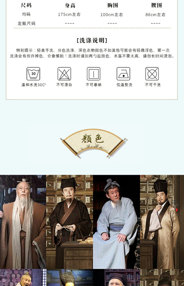 影視古裝春秋戰國孔子李時珍同款古裝棉麻老百姓古代大夫書生服裝
