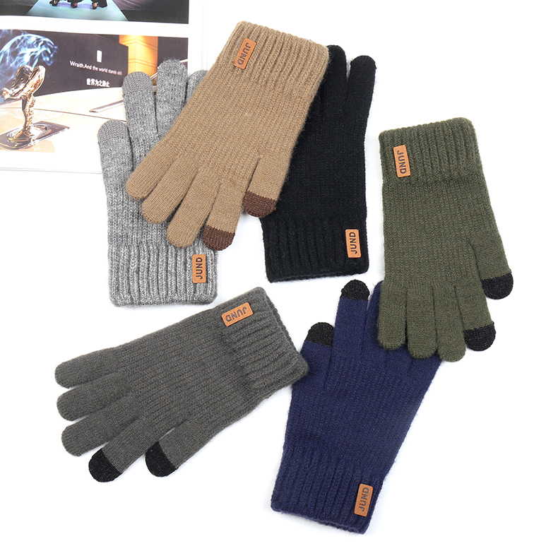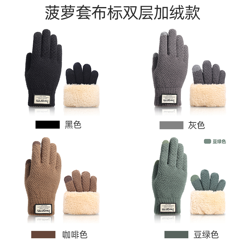 新款觸屏手套男士冬季加厚保暖提花針織防寒毛線黑色耐磨防風