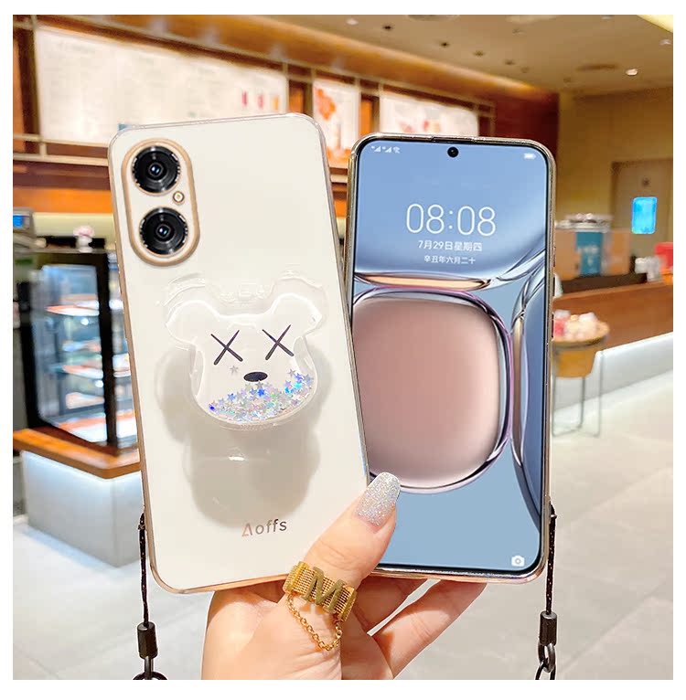 適用于華為P50Pro手機殼折疊支架暴力熊P50保護套直邊軟硅膠P5o全包邊防摔外殼Por女款網紅簡約高檔流沙卡通