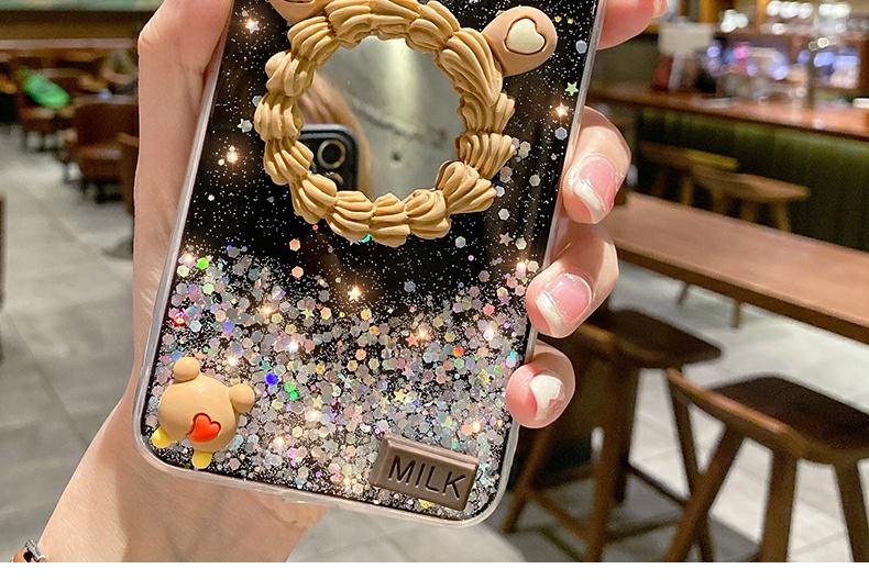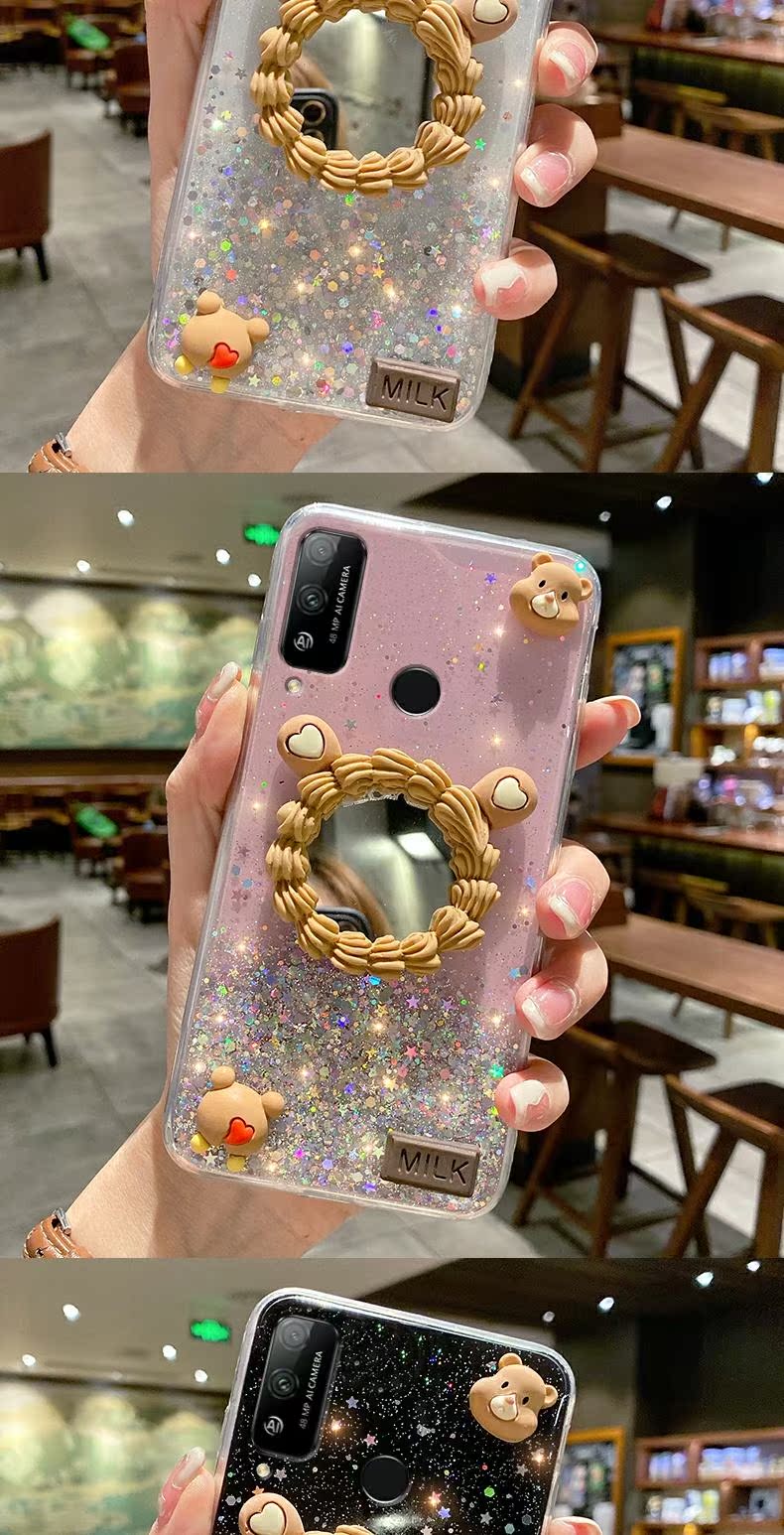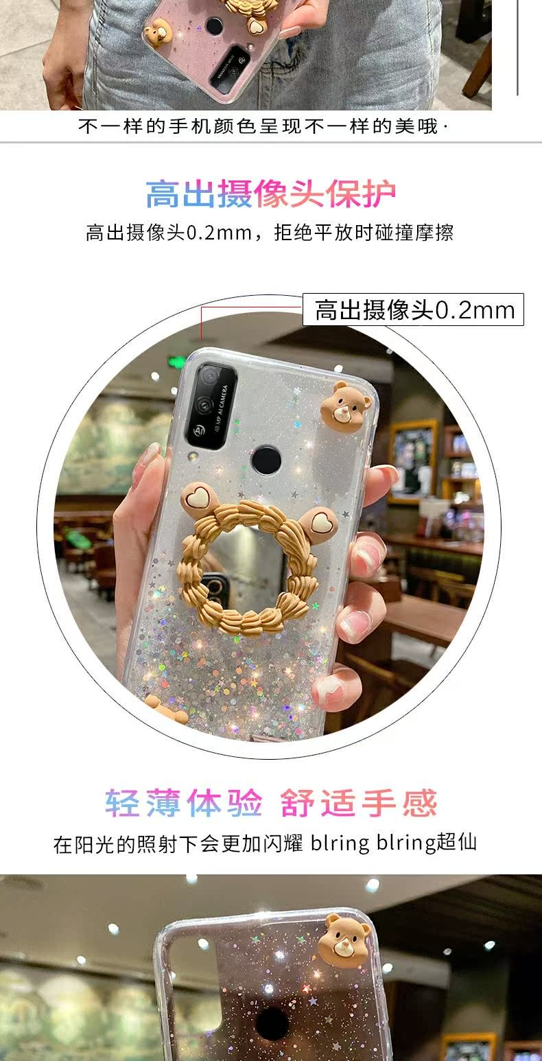 小熊愛心鏡子閃粉適用華為榮耀PLAY4T手機殼honor play4tpro手機套女款潮牌play4pro外殼play3女ins韓版秋冬