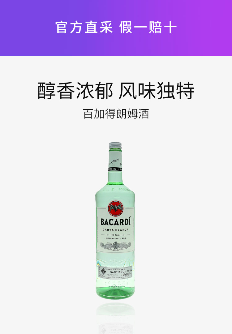 歐洲直郵bacardi百加得朗姆酒37.5度3000ml波多黎各洋酒進口大瓶