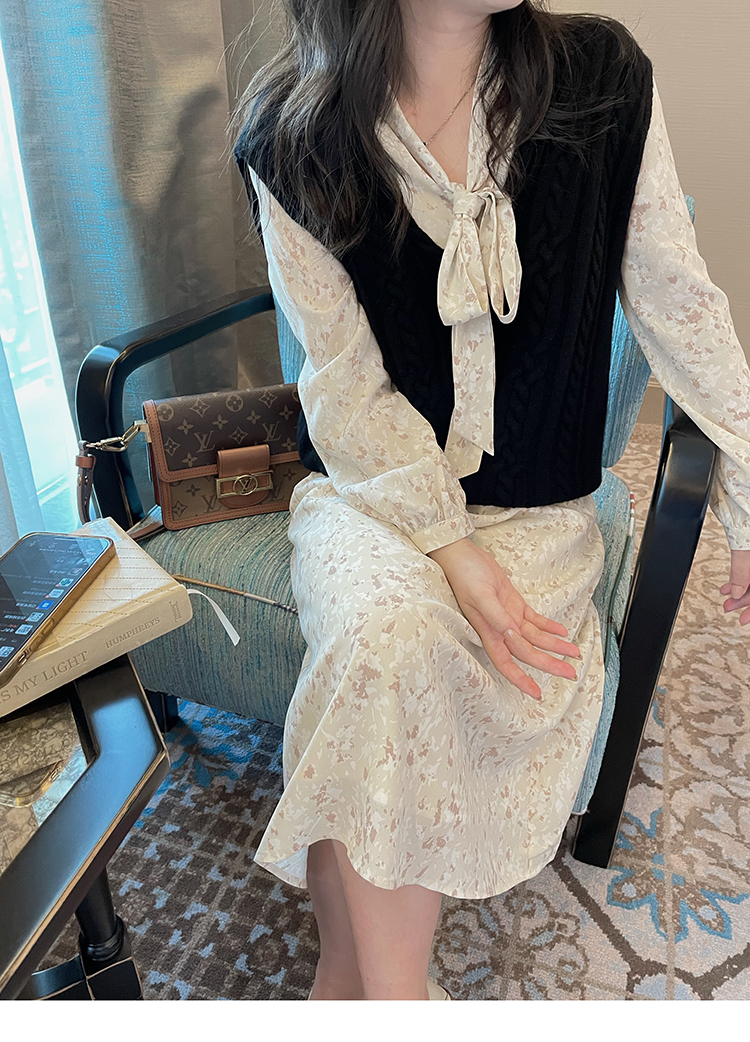 爾爾自制小個子碎花吊帶連衣裙淡雅雪紡打底裙秋冬新品