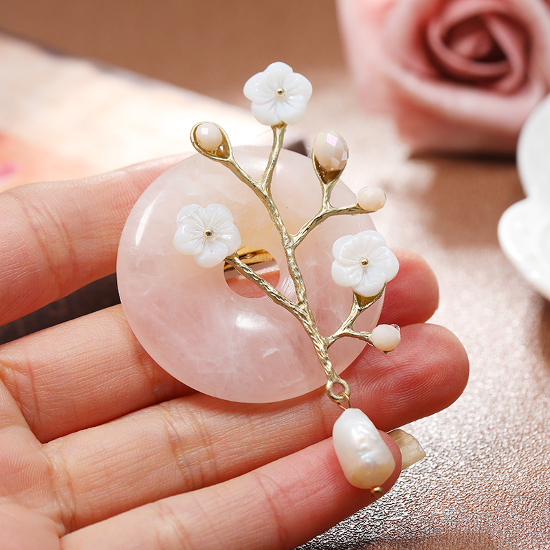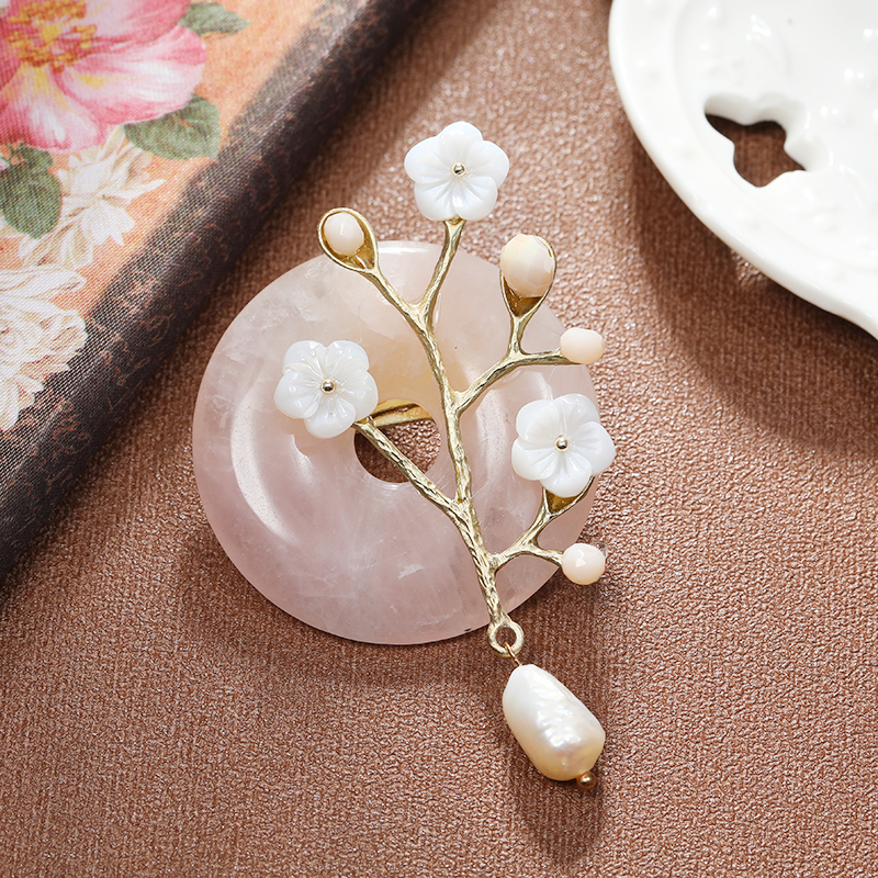 中國風優雅古典天然水晶貝殼胸花女復古文藝高檔胸針外套大衣別針