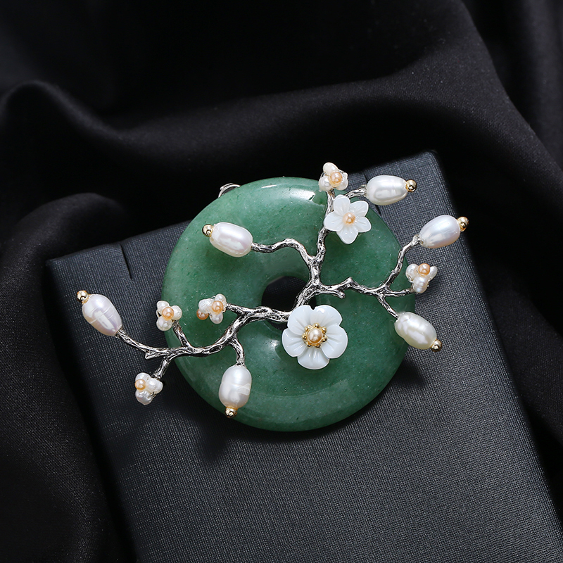 祖母綠高級感淡水珍珠高檔奢華胸針