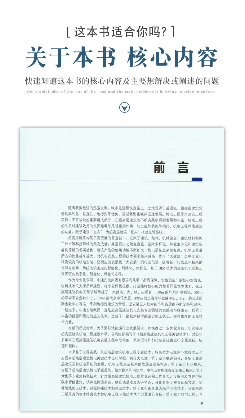 目前,中建股份、中建八局、中建三局等相繼編寫和出版了系列叢書,對引領技術發展、推廣新技術應用、展示公司業績、提升企業形象等方面起到了顯著的作用。中建安裝先后承擔了300余項國家及省市重點工程項目,包括各類高、新、特、難項目,形成省部級及以上科技進步獎100余項,卻未有進行系統的梳理。 2020年是“十三五”規劃收官之年,是中建安裝厚植根基、突破瓶頸、創新引領、承上啟下,助力中建集團創建世界企業,打好公司“十四五”發展基礎的關鍵之年。 為了貫徹落實中建安裝“高質量發展”戰略部署,按照中建安裝集團有限公司《2020年科技與質量管理工作目標、指標和重點工作》的相關安排,計劃在全公司范圍內組織開展“兩大主業、三張名片”關鍵技術系列叢書編寫工作。 根據公司業務發展情況,從超高層建筑機電工程、大型公共建筑機電工程、石化裝置一體化建造(含化工裝備制造)、大型儲運工程(含LNG低溫罐)、鋼結構工程一體化建造、城市軌道交通站后工程、智慧城市(含智慧建筑、建筑智能化)、水務環保等八個方面,編寫關鍵技術系列叢書。