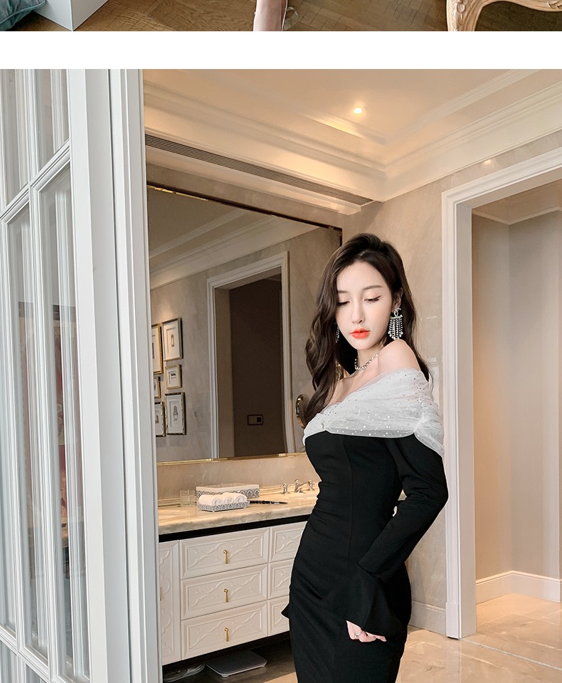 一字肩鎖骨氣質名媛風2023感連衣裙