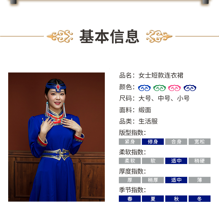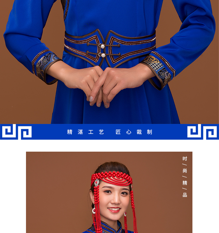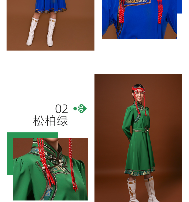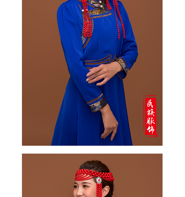 新款女士蒙古袍蒙古族舞蹈迎賓服