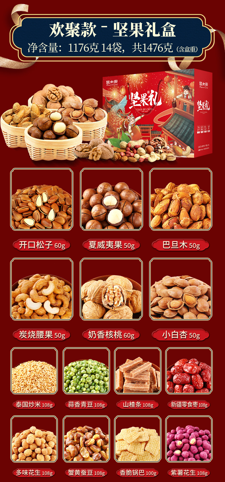 創意堅果大禮包禮品禮盒置辦送員工實用家長父母長輩見面禮中秋節