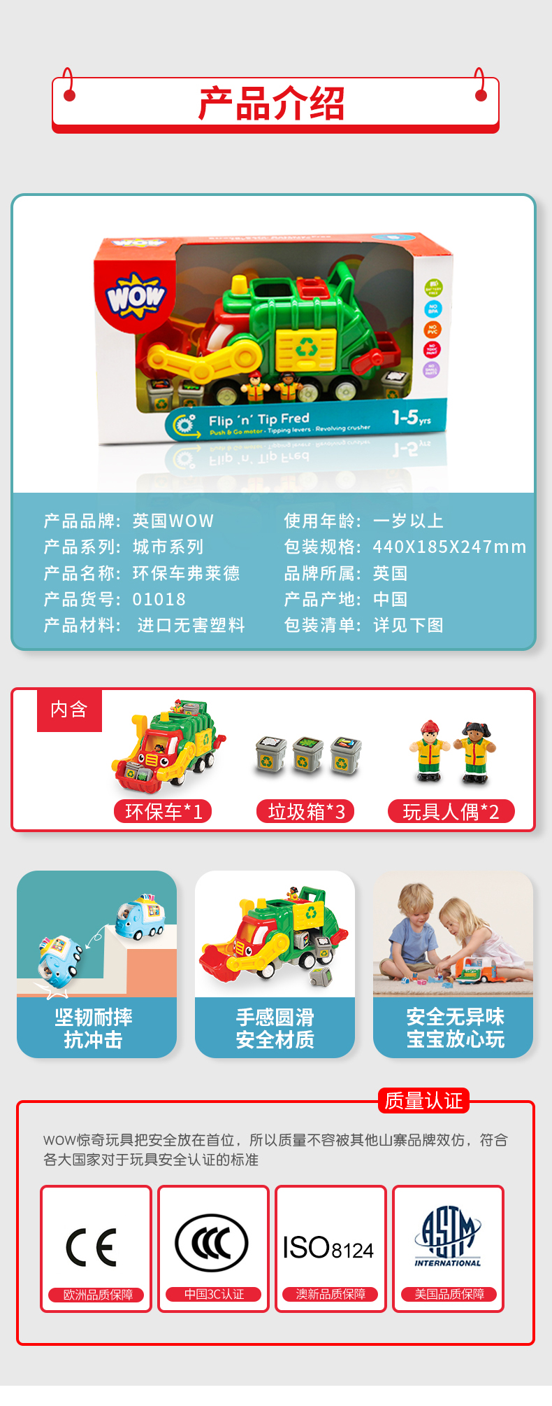 英國wow驚奇兒童寶寶益智慣性耐玩耐摔塑膠垃圾清掃車大號玩具車