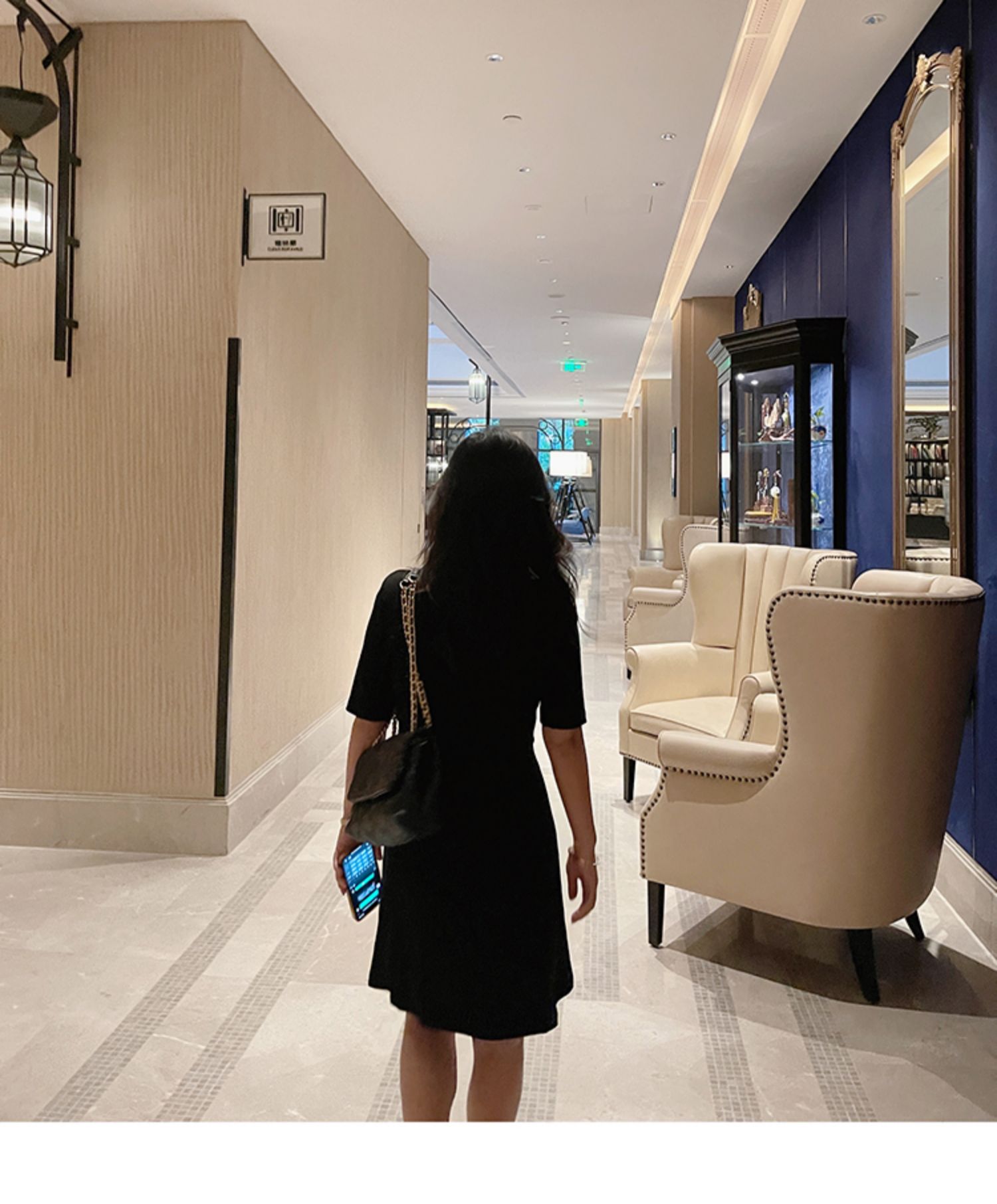 心藍家茶歇法式黑色新款收腰連衣裙