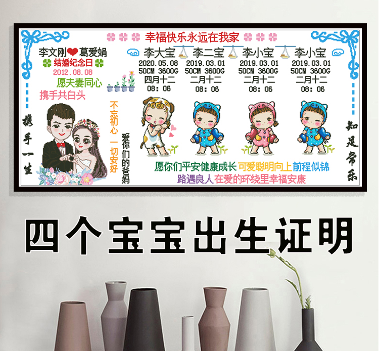 寶寶出生證明十字繡新款鉆石畫2023定制自己手工線繡情侶結婚禮物