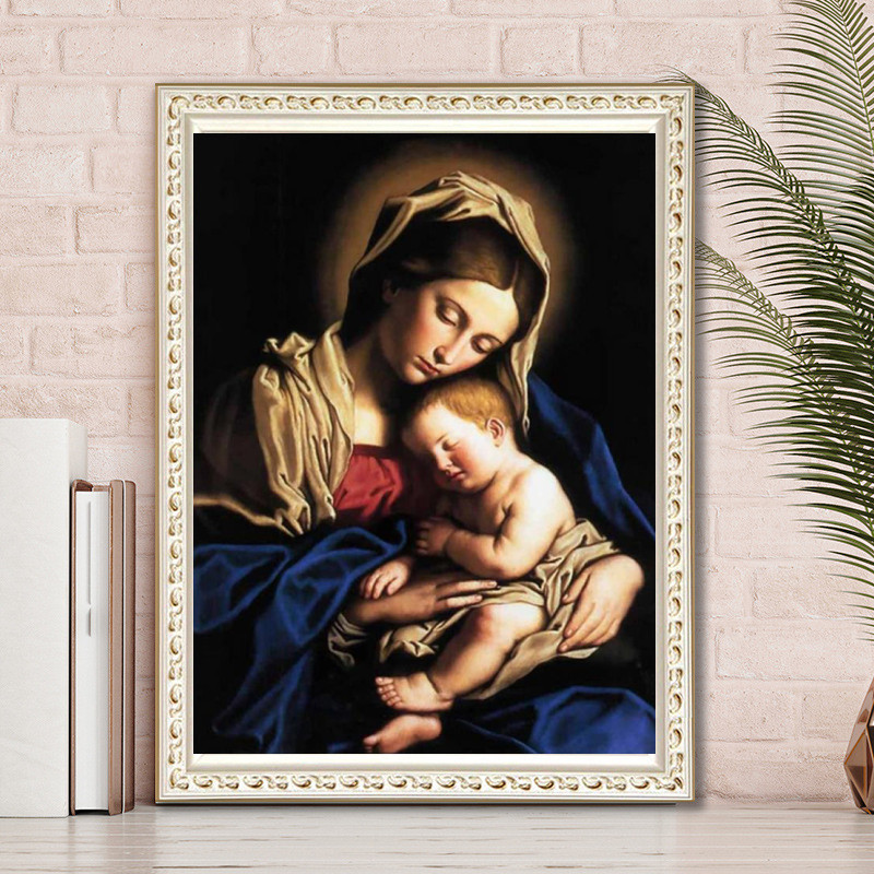 滿鉆5d魔方鉆石畫母子情深十字繡