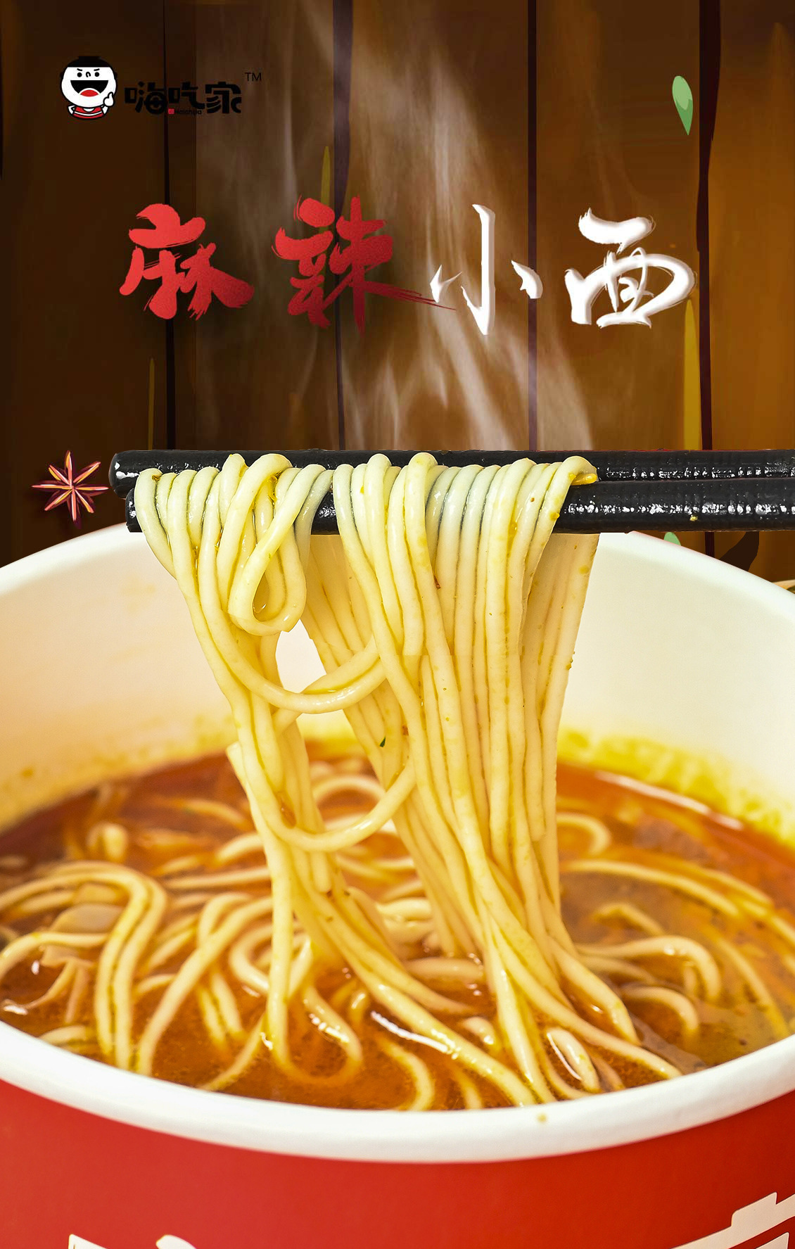 正宗嗨吃家麻辣小面127g*6桶裝非油炸方便速食面大碗面快食面泡面