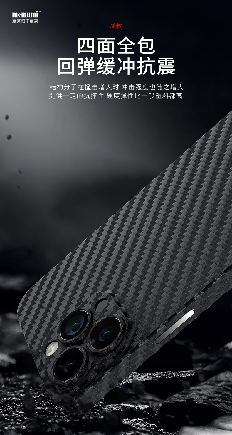 麥麥米適用于iPhone13手機殼碳纖維紋超薄磨砂蘋果十三Promax全包鏡頭防摔保護套mini新款凱夫拉防摔promax