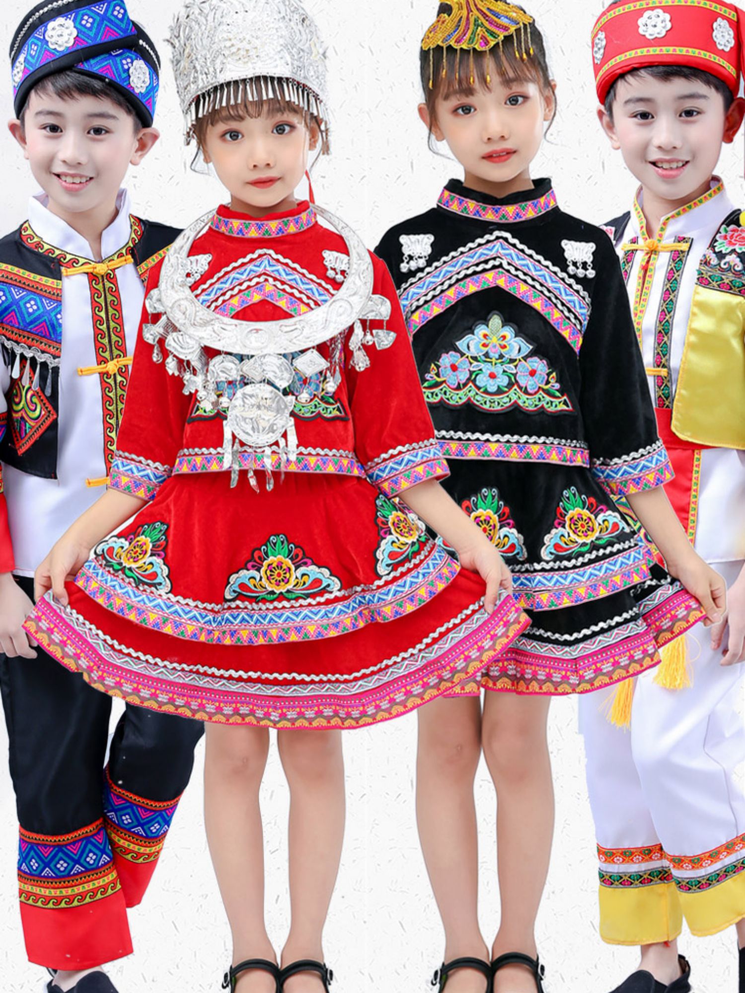 兒童少數民族演出服男女童苗族彝族土家族壯族舞蹈表演服苗族服裝