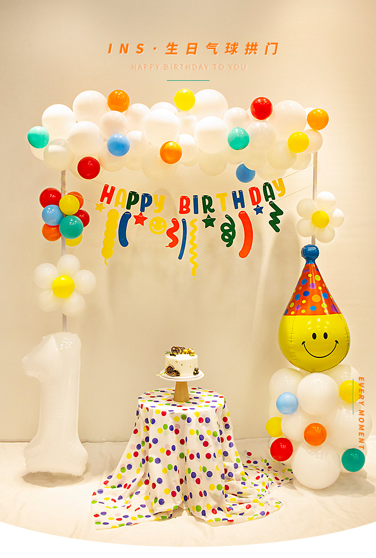 ins風一周歲生日裝飾氣球立柱男孩女寶寶戶外派對背景墻場景布置
