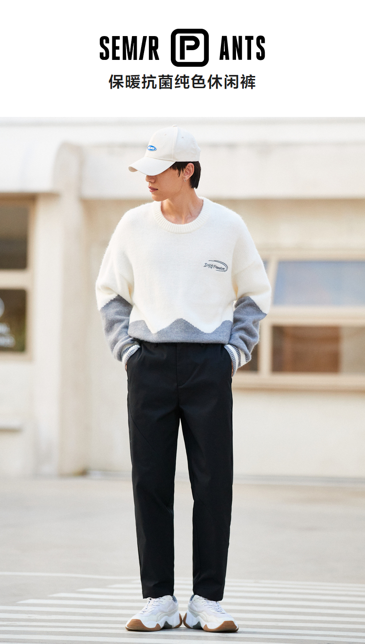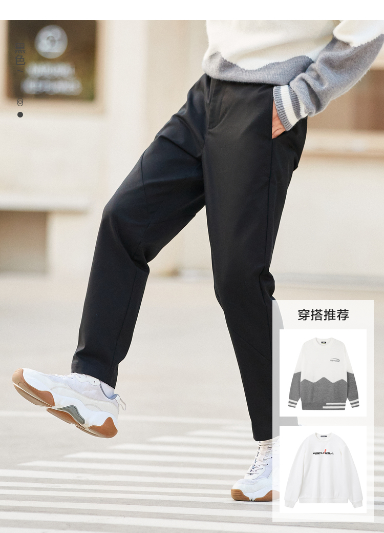森馬休閑褲男2023秋季新款純色商務褲子基礎簡約錐形男士黑色長褲